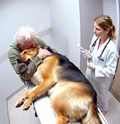 In his silent way, Leo seemed to answer yes. What had been a room filled with impending loss now pulsed with hope reborn. The assistant, tears streaming, smiled through her emotion, feeling the profound bond between man and dog—an unspoken connection transcending life and death.