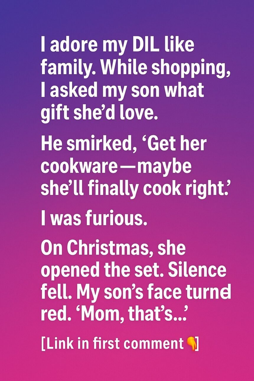 “Maybe get her some cookware—then she’ll finally cook the way I like.” His tone was playful, but I could tell it wasn’t a kind comment. My heart sank, and I felt a wave of disappointment.I didn’t want Emily to feel unappreciated or criticized, so instead of following my son’s suggestion, I decided to surprise her with something meaningful. I bought a beautiful cookware set but added a heartfelt note that read:“For the incredible meals you already make, and the love you pour into everything you do.
