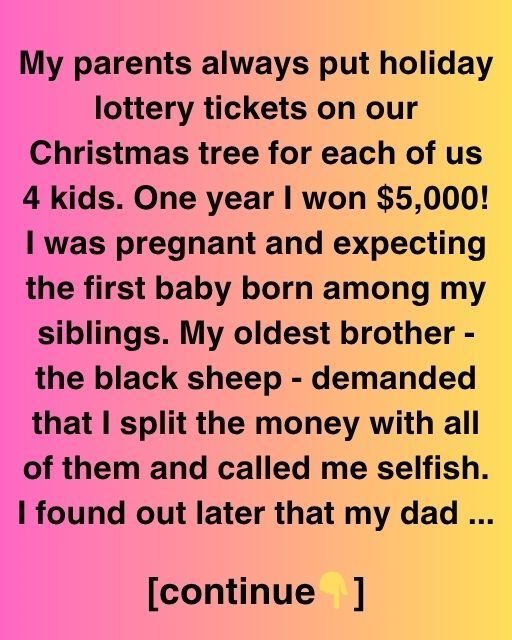 Slowly, he earned it. He became “Uncle Ry” to Lila, found a steady job, and even confessed that back then he had stolen my leftover tickets—thankfully, all duds. I forgave him, not because it didn’t hurt, but because I didn’t want to carry it anymore. Years later, at Christmas, little Lila handed out the scratch-offs herself.