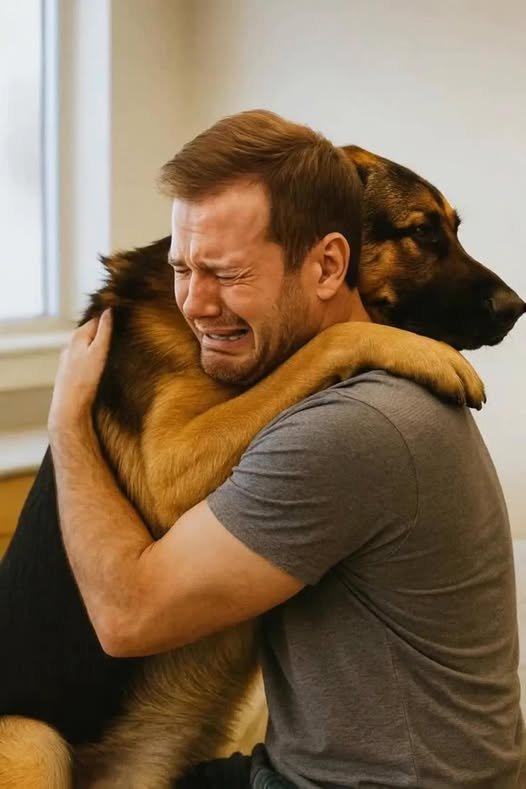 I don’t know how to live without you.” Max, despite his weakness, placed his paws gently on his owner’s shoulders as though he understood every word. His cloudy eyes still shone with love, and his tail gave the faintest wag. Everyone in the room felt the weight of the moment as the man sobbed into his dog’s fur, the bond between them almost visible.