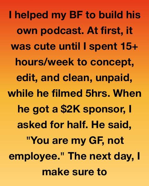 I told him to keep the money and use it to hire the editor he’d found. I told him I loved him, but I was “retiring” from the world of podcasting. I wanted to go back to being just a couple, without the shadow of waveforms and timestamps between us. He seemed relieved at first, but then the reality set in. Without my unpaid labor, the podcast wasn’t a goldmine; it was a massive drain on his time and money. Within a month, his “vision” had faded because he didn’t actually want to do the work—he just wanted to be famous.