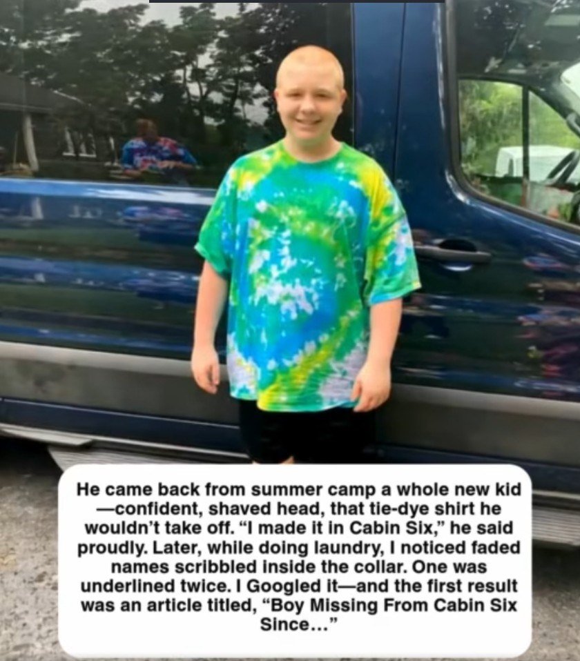 He came back from summer camp a whole new kid—confident, shaved head, that tie-dye shirt he wouldn’t take off. “I made it in Cabin Six,” he said proudly. Later, while doing laundry, I noticed faded names scribbled inside the collar.