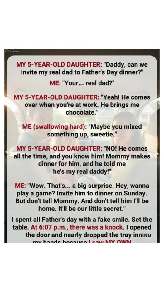At 6:07 p.m., a knock sounded at the door. Standing there was a man, holding a small bag with gold-wrapped chocolates. Lily ran to him, delighted, calling him “Daddy.”
