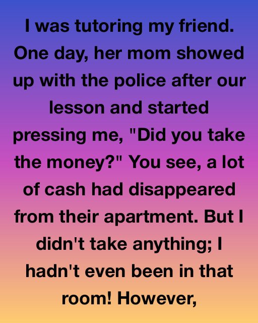I was tutoring my friend. One day, her mom showed up with the police after our lesson and started pressing me, “Did you take the money?” You see, a lot of cash had disappeared from their apartment. But I didn’t take anything; I hadn’t even been in that room!