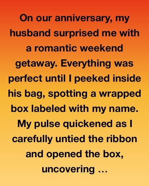My spouse surprised me with a romantic weekend on our anniversary. Everything was fine until I saw a wrapped box with my name in his luggage. My heart raced as I carefully untied the ribbon and opened the box to find a dazzling necklace with a heart-shaped pendant etched with our wedding date.
