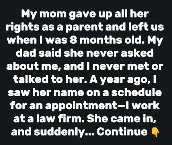 My mom gave up all her parental rights to my dad and left when I was 8 months old. My dad said she never asked about me, and I’ve never met or spoken to her.