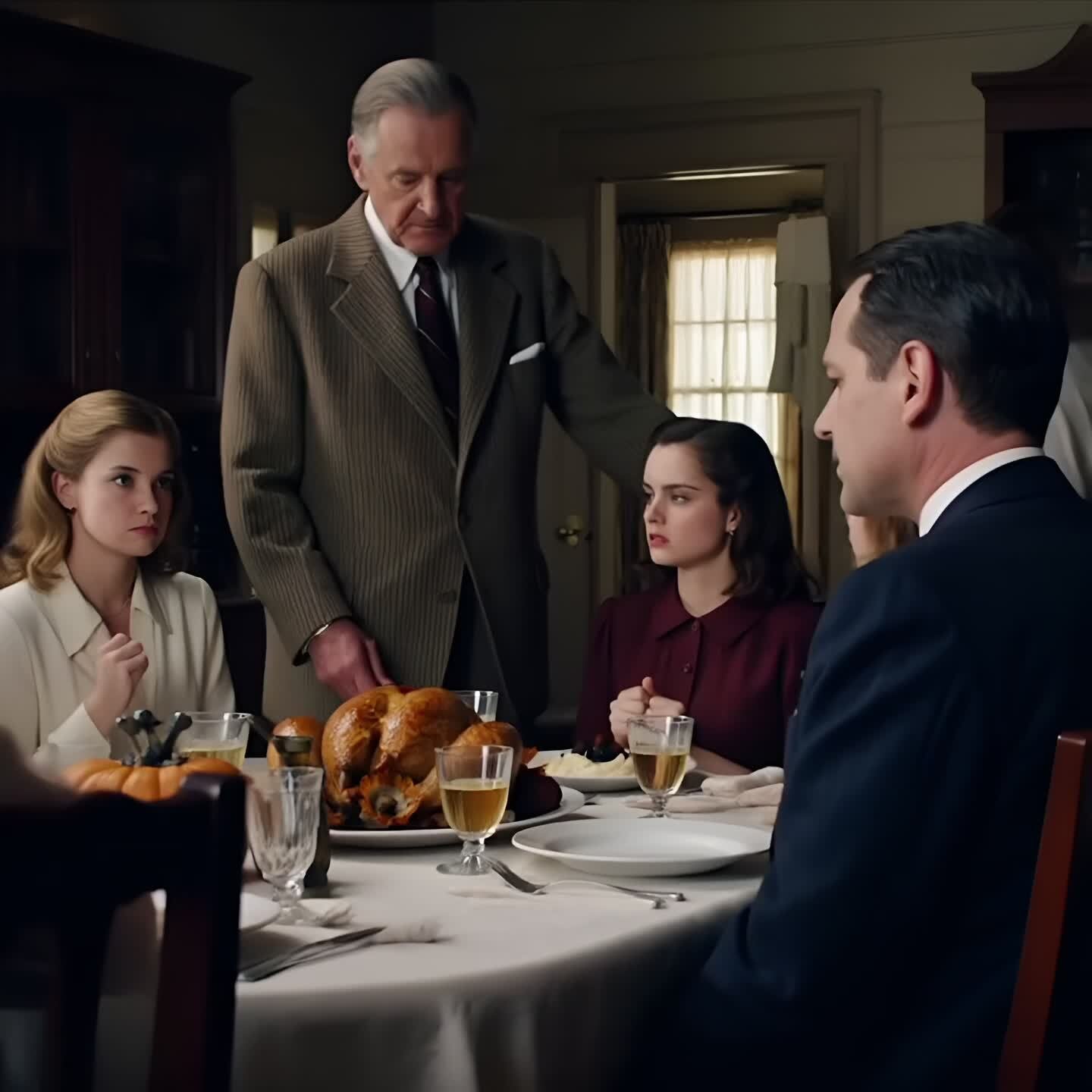 It should have been a normal scene: turkey, pie, family, the soft lie of warmth.