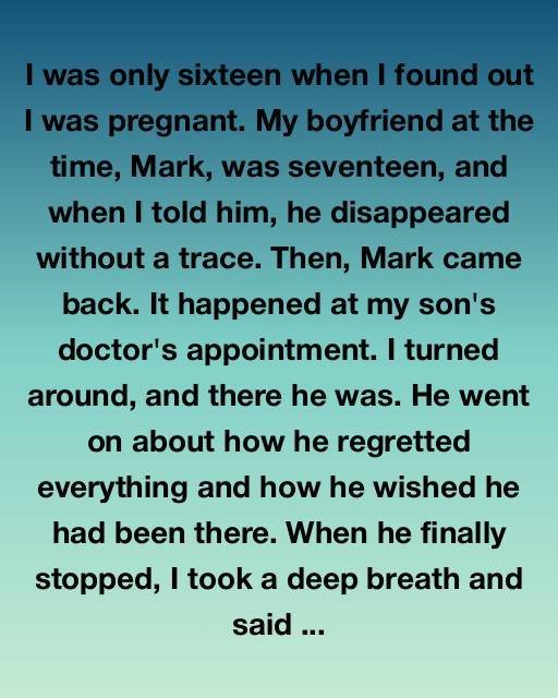 I was only sixteen when I found out I was pregnant. My boyfriend at the time, Mark, was seventeen, and when I told him, he disappeared without a trace. Then, Mark came back. It happened at my son’s doctor’s appointment. I turned around, and there he was. He went on about how he regretted everything and how he wished he had been there. When he finally stopped, I took a deep breath and said, “You don’t get to walk back into our lives just because you suddenly feel guilty.”
