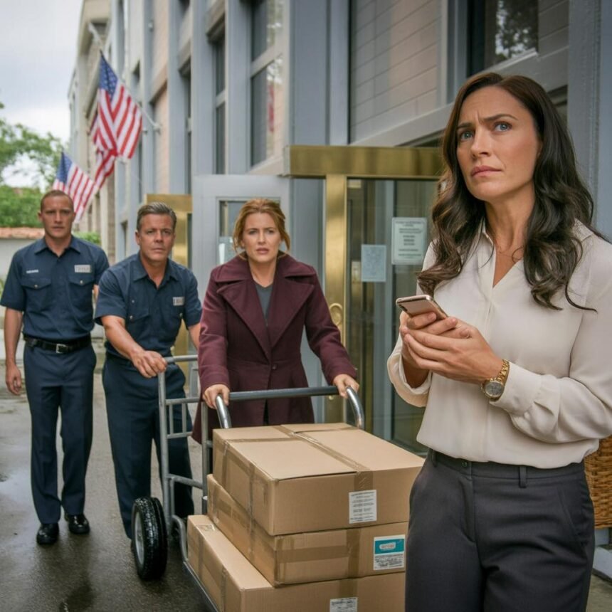 I knew something was wrong the second I stepped out of the rideshare and saw the movers. Three of them stood on the sidewalk in navy shirts, leaning casually against stacks of cardboard boxes—my boxes. I recognized the corner dents, the black tape, the thick marker ink.