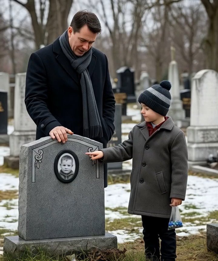 The cemetery was a field of stone and winter light. Four months had passed since the funeral, yet the ache in Daniel’s chest still felt like fresh ice—sharp, blinding, unforgiving. He stood at his son Arlo’s grave, tracing the oval portrait on the headstone with a thumb that trembled despite the calm February air.